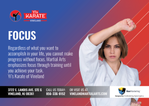 Here at Yi’s Karate we work to develop skills to help maintain focus as part of our curriculum here at the school. We are currently offering a special Two Weeks Free deal at the school so give us a call today at 856-405-0008 to schedule your first Karate Lesson with us and start developing the ability to gain better focus and concentration today.